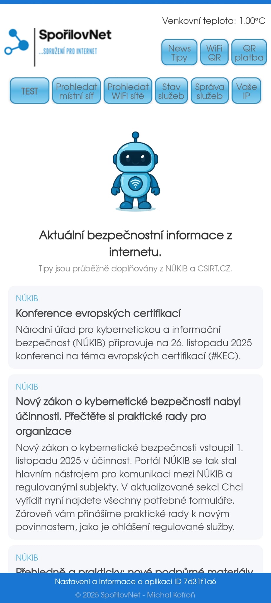 Získáte aktuální přehled o bezpečnostních hrozbách v internetu od NÚKIB A CSIRT, rovněž si můžete aktivovat příjem notifikací přímo od nás, například kdy budou probíhat servisní práce nebo jiné důležité události i mimo síť SpořilovNet.